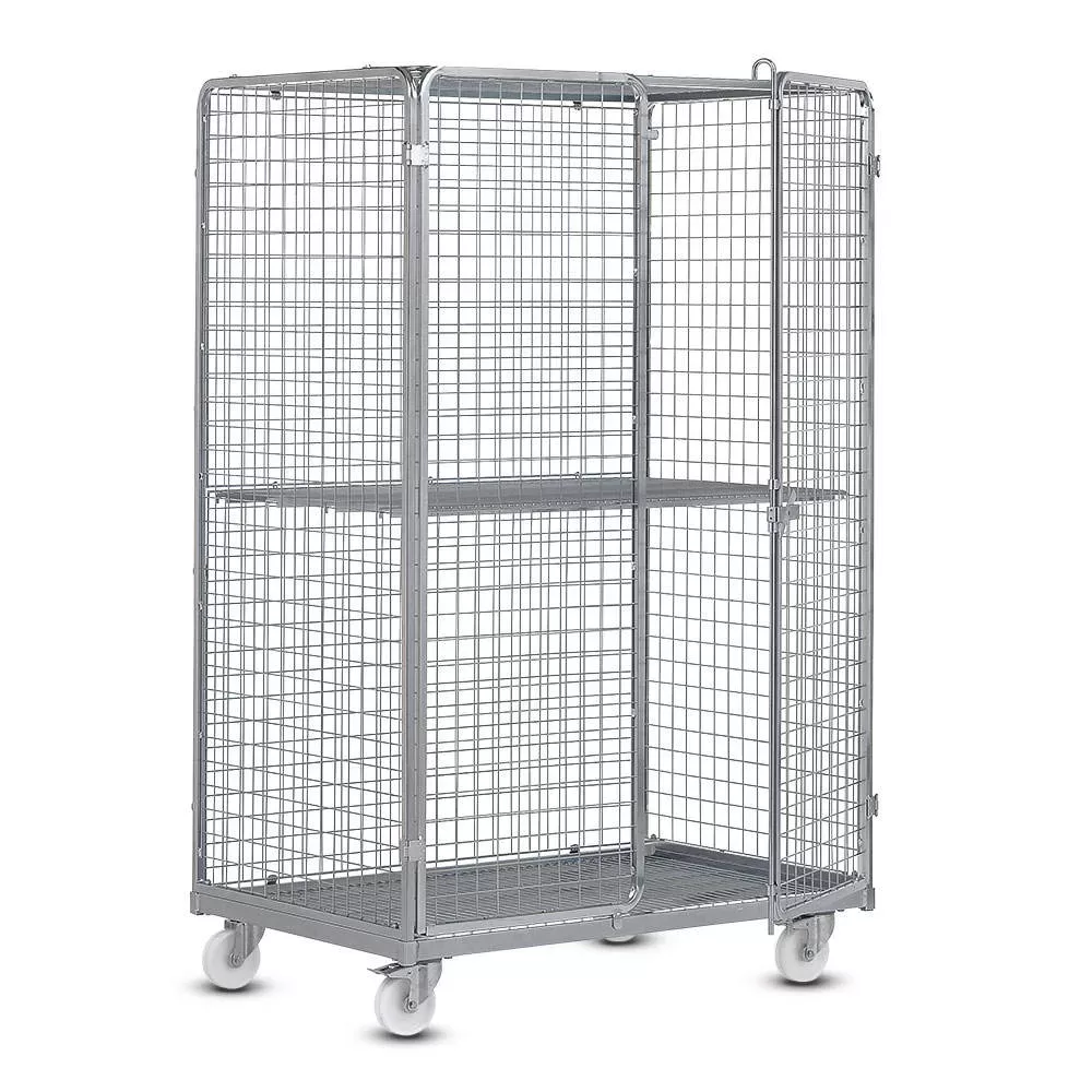 Нижняя рама из металла. Рама из трубы прямоугольного сечения с проволочной опорной поверхностью, укрепленная поперечинами из полосовой стали. Конструкция контейнера включает в себя раму из трубы прямоугольного сечения и проволочную сетку с соединением заклепками. Дверь на металлических шарнирах. Угол открывания 270º.