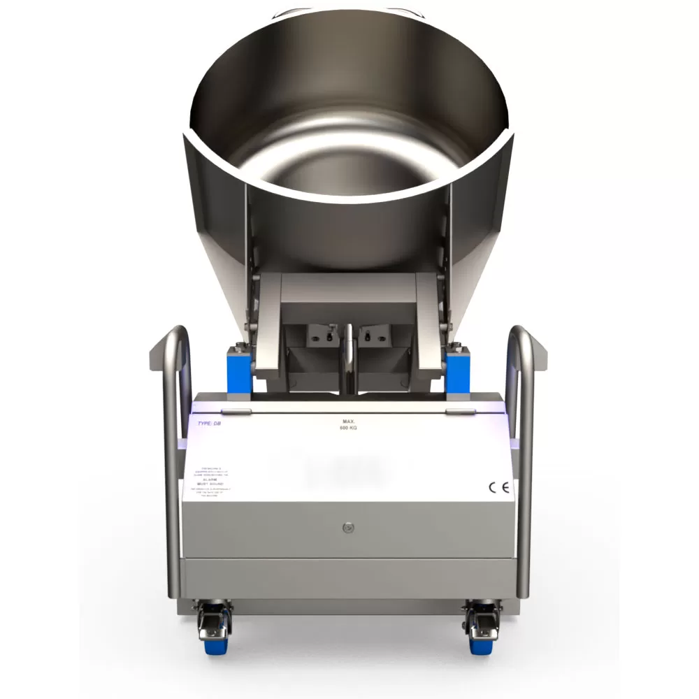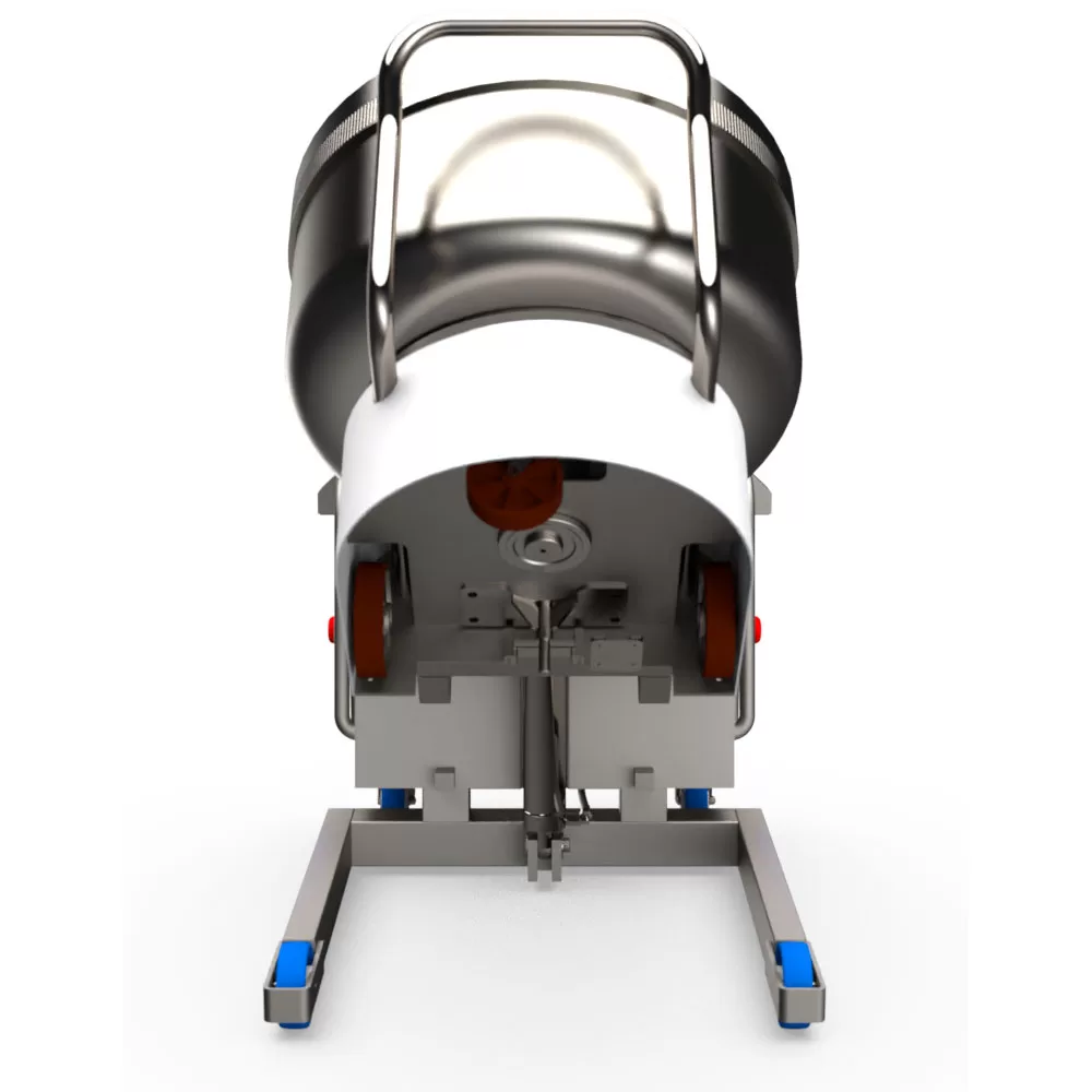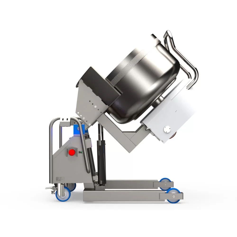 Из-за достаточно густой консистенции извлечение теста из контейнеров требует больших усилий. Для удобства контейнер можно наклонить на 90 градусов. Данная машина позволяет плавно перевести тележку-дежу в удобное для выгрузки положение либо наклонить до установленного максимального угла. Необходимость поднимать грузы вручную, нагибаться и наклоняться отпадает, риск возникновения болей в пояснице, растяжения мышц спины или получения производственных травм уменьшается. Здоровый рабочий доволен, работоспособен и повышает производительность труда.