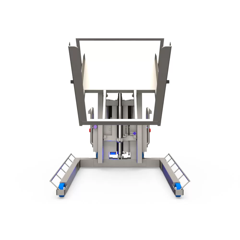 Спиносберегающий подъемник-опрокидыватель (кантователь) типа ПОШК марки «STEELPRO» предназначен для опорожнения ящичных поддонов, широких пластмассовых и прочих контейнеров больших размеров в тех случаях, когда высоты выгрузки опрокидывателя типа BR недостаточно. Для поднятия и опрокидывания на определенной высоте данная машина оборудована фирменным подъемно-опрокидывающим механизмом «ван Оршрот». От подъемников-опрокидывателей типа ПОШК данную машину отличает рабочая ширина и стационарность использования с возможностью периодического перемещения при необходимости. Для загрузки контейнера идеально подходят гидравлические тележки или вилочные погрузчики.
