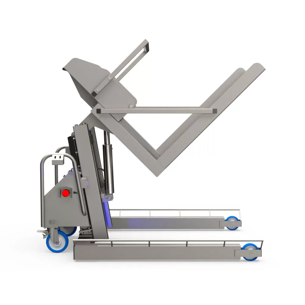 «STEELPRO» предлагает простые и удобные средства механизации подъемно-транспортных работ для повышения эффективности производства и уменьшения риска производственных травм. Машина типа BRLT идеально подходит для выгрузки продукции как на стол или в технологическую линию, так и на уровне рабочей платформы. Продублированные с обеих сторон органы управления остаются в пределах досягаемости рукой вне зависимости от фактического положения машины, в результате чего необходимость лишний раз обходить машину для ее пуска/останова отпадает. Благодаря этому оборудование марки «STEELPRO» позволяет максимизировать полезное рабочее время и пользуется большим спросом на предприятиях пищевой промышленности. Данную машину можно встраивать в технологические линии для выгрузки содержимого крупных контейнеров на ленточные конвейеры или в приемные бункеры-накопители винтовых конвейеров, а также использовать для загрузки сырья в волчки, прессы механической обвалки, дообвалки и жиловки, посолочные барабаны (тумблеры), куттеры, шприцы (инъекторы) и фасовочно-упаковочное оборудование.