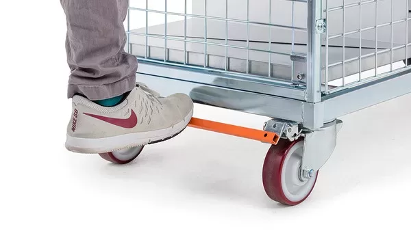 Просто отожмите ножную скобу вниз, и фиксатор превратит два направляющих колеса в неповоротные колеса. и фиксаторЭто облегчает маневрирование тележкой.