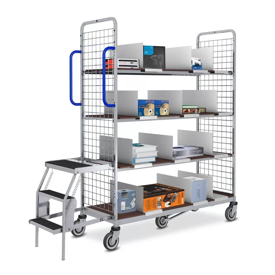 Дополнительно: пятое колесо, Ø 125 мм, установлено по центру для легкого маневрирования. Тележка для комиссионирования может вращаться на месте.