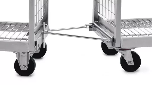 Тягово-сцепное устройство позволяет сцепить несколько тележек для комиссионирования между собой.