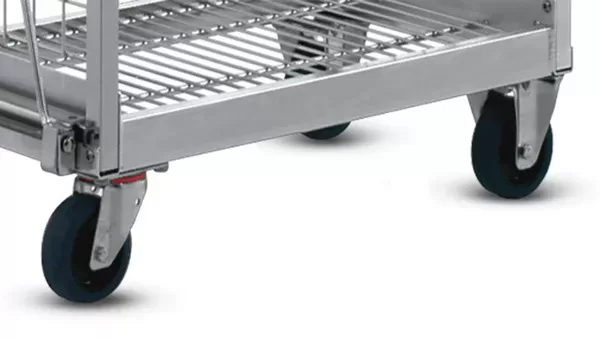 Нижняя рама из трубы прямоугольного сечения с приваренным проволочным дном. Боковые детали рамы из трубы прямоугольного сечения с металлической сеткой, вставлены в нижнюю раму и заклепаны. Тележка KT2 индивидуально собирается по принципу конструктора. Дополнительная информация представлена в проспекте (ссылка для загрузки указана выше).