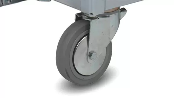 Два неповоротных колеса Wanzl и два направляющих колеса Wanzl, Ø 160 мм, на выбор с обычным или централизованным стопорным устройством. Резиновая рабочая поверхность колеса.