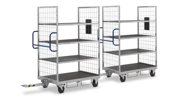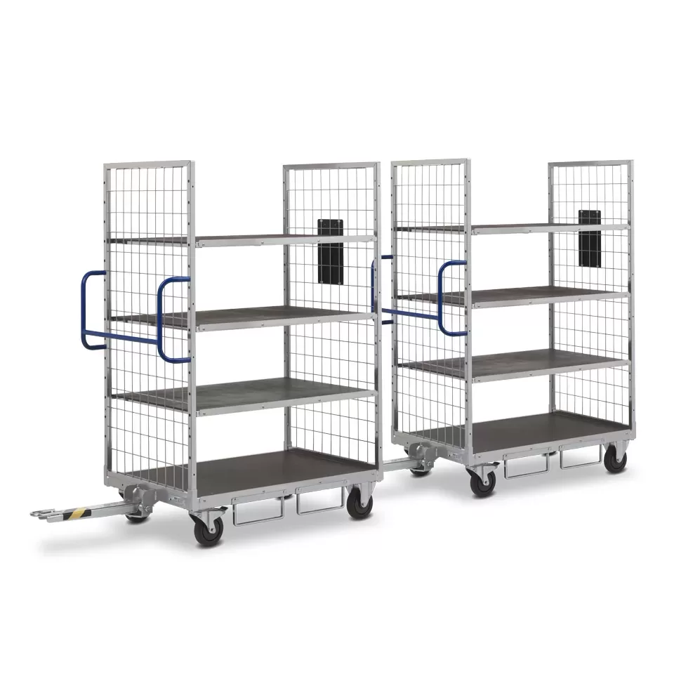 Для перевозки буксирными тягачами тележка KT4 может быть оснащена сцепкой и ручкой.