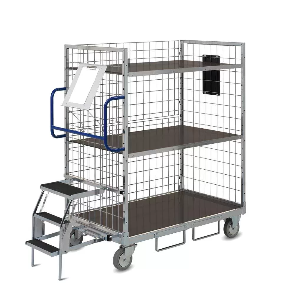 Нижняя рама из трубы прямоугольного сечения с нескользящим деревянным покрытием. Боковые детали рамы из трубы прямоугольного сечения с металлической сеткой, вставленные в нижнюю раму и привинченные. Деревянные полки завинчиваются с регулировкой по высоте.
