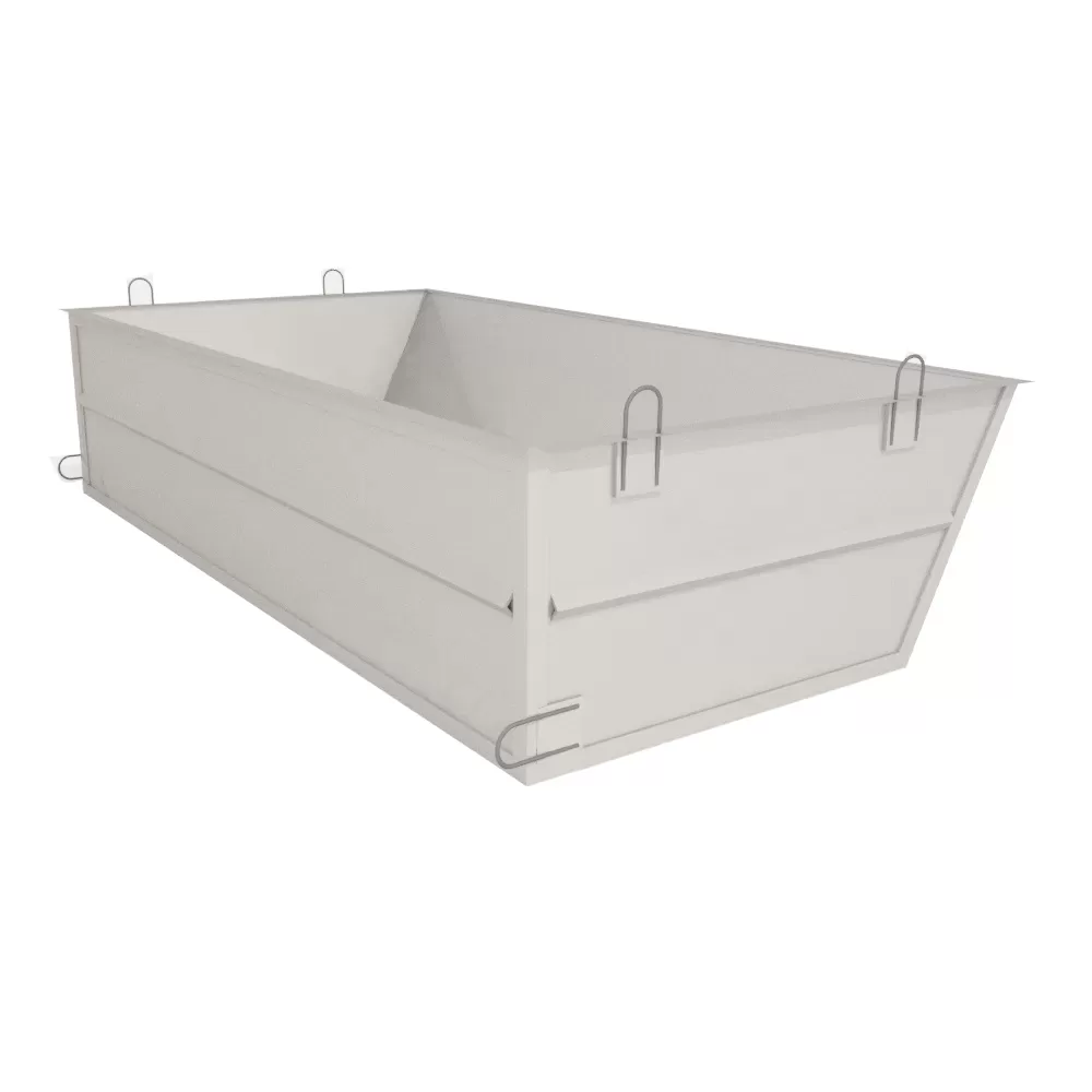 Тара ТМП-45 металлическая предназначена для приема и транспортировки раствора, а также других строительных материалов на рабочую площадку. Тара ТМП-45 представляет собой герметичную сварную конструкцию из листовой стали. Транспортировка тары ТМП-45 грузоподъемными механизмами осуществляется за четыре строповочные петли, расположенные по верхнему контуру изделия, независимо от ее загрузки. Разгрузка тары ТМП-45 производится при захвате тары за две проушины, расположенные на боковой стенке тары.