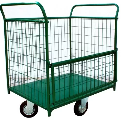 Тележка-контейнер ТП-13М предназначена для транспортировки и хранения любых грузов. Один борт открывается наполовину, что позволяет легко доставать грузы, лежащие на дне.